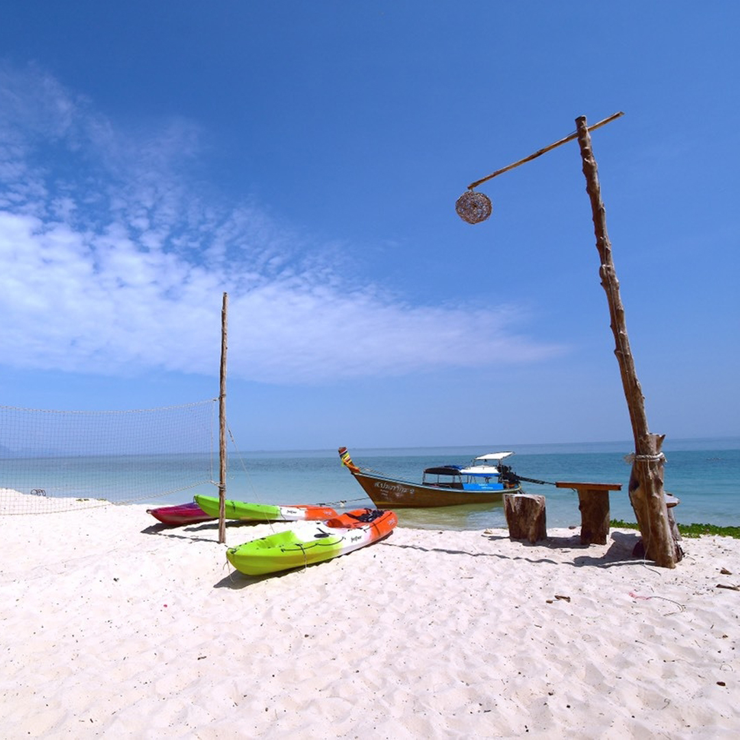 เรือท่องทะเลขนาดใหญ่ของเราเมื่อพาลูกค้าเที่ยวทะเลเสร็จแล้ว จะมาจอดที่หน้ารีสอร์ท ทางรีสอร์ทจะส่งเรือเล็กมารับที่เรือใหญ่ของเรา เตรียมพร้อมออกจากเกาะสุดท้ายของโรงแรม