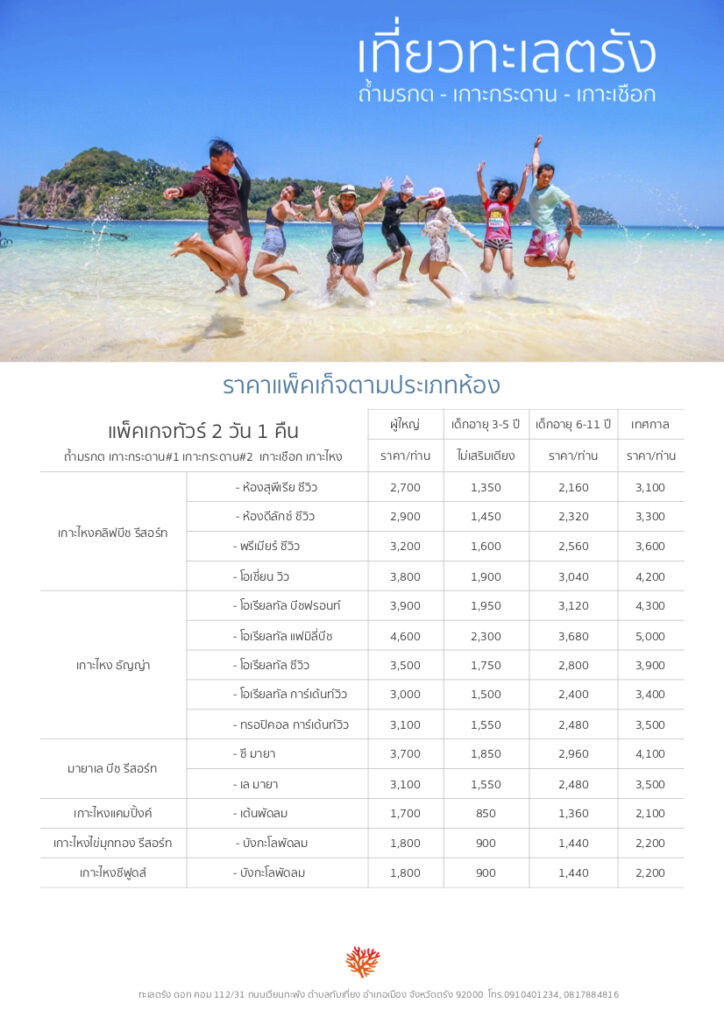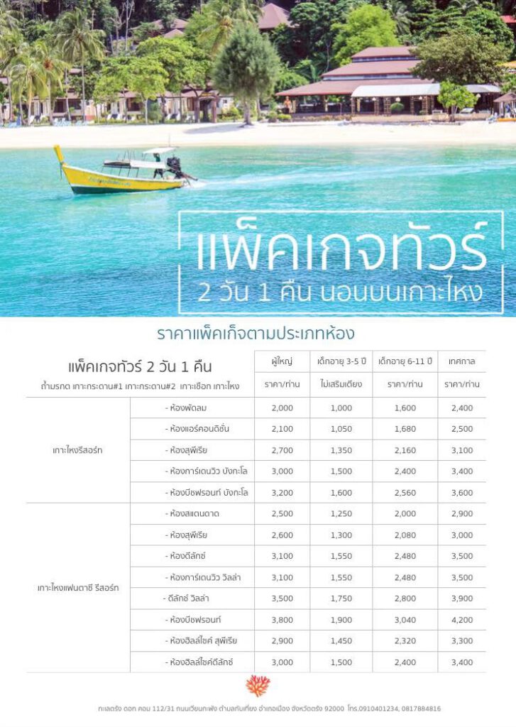 แพ็คเกจท่องทะเลตรัง พร้อมที่พักบนเกาะไหง 2 วัน 1 คืน
